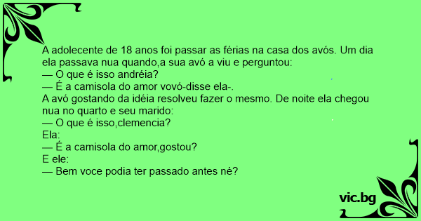 A avó gostando da idéia resolveu fazer o mesmo. De noite ela chegou nua no quarto e seu marido: