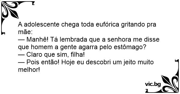 — Manhê! Tá lembrada que a senhora me disse que homem a gente agarra pelo estômago?