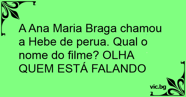 A Ana Maria Braga chamou a Неве de perua. Qual o nome do filme? OLHA QUEM ESTÁ FALANDO