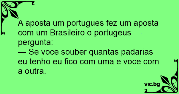 A aposta um portugues fez um aposta com um Brasileiro o portugeus pergunta: