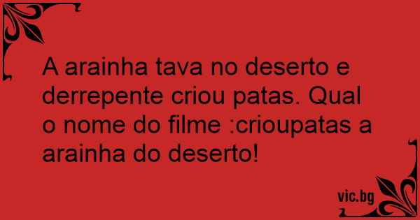 A arainha tava no deserto e derrepente criou patas. Qual o nome do filme :crioupatas a arainha do deserto!