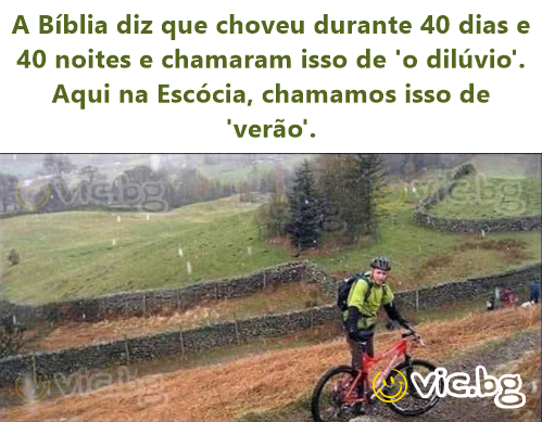 De Bijbel zegt dat het 40 dagen en 40 nachten regende en ze noemden het 'de zondvloed'. Hier in Schotland noemen we dat 'zomer'.