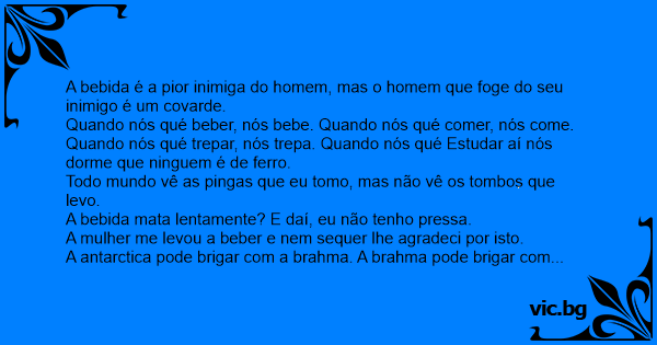 A antarctica pode brigar com a brahma. A brahma pode brigar com a antarctica. As duas só não podem brigar comigo.