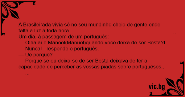 — Porque se eu deixa-se de ser Besta deixava de ter a capacidade de perceber as vossas piadas sobre portuguêses...