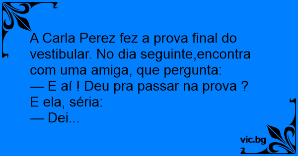 A Carla Perez fez a prova final do vestibular. No dia seguinte,encontra com uma amiga, que pergunta: