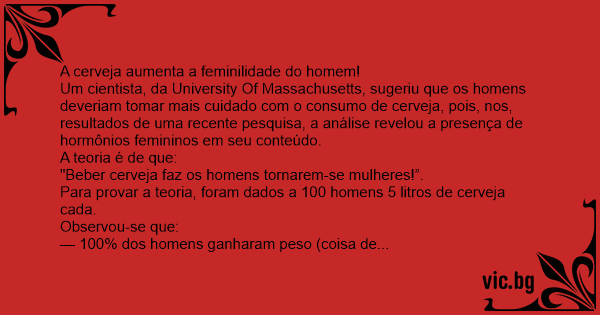 "Beber cerveja faz os homens tornarem-se mulheres!”.