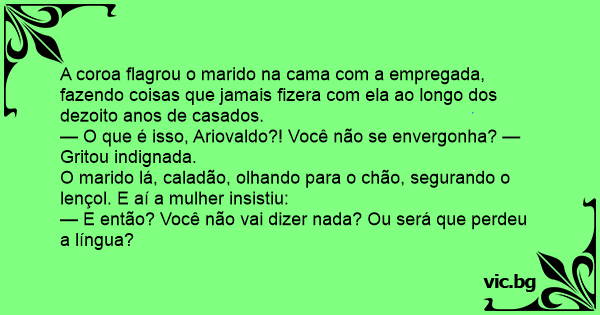 A coroa flagrou o marido na cama com a empregada, fazendo coisas que jamais fizera com ela ao longo dos dezoito anos de casados.