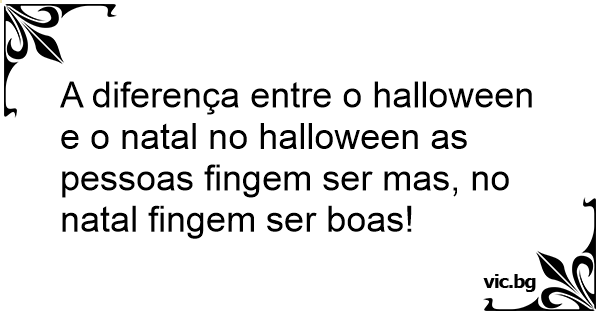 A diferença entre o halloween e o natal no halloween as pessoas fingem ser mas, no natal fingem ser boas!