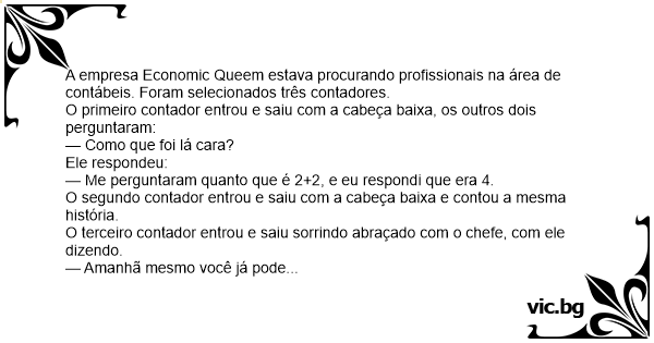 O primeiro contador entrou e saiu com a cabeça baixa, os outros dois perguntaram:
