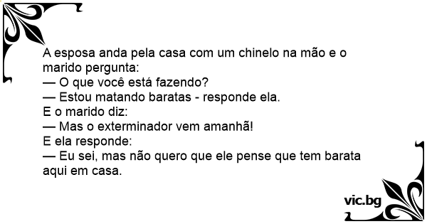 A esposa anda pela casa com um chinelo na mão e o marido pergunta: