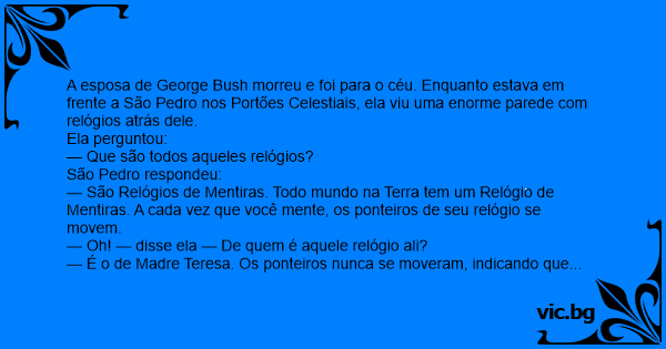 — É o de Madre Teresa. Os ponteiros nunca se moveram, indicando que ela nunca mentiu.