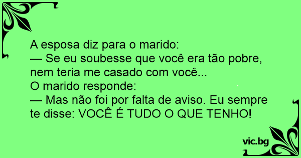 — Se eu soubesse que você era tão pobre, nem teria me casado com você...