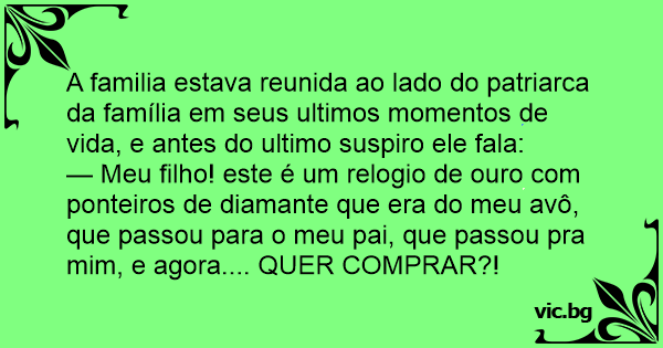 — Meu filho! este é um relogio de ouro com ponteiros de diamante que era do meu avô, que passou para o meu pai, que passou pra mim, e agora.... QUER COMPRAR?!