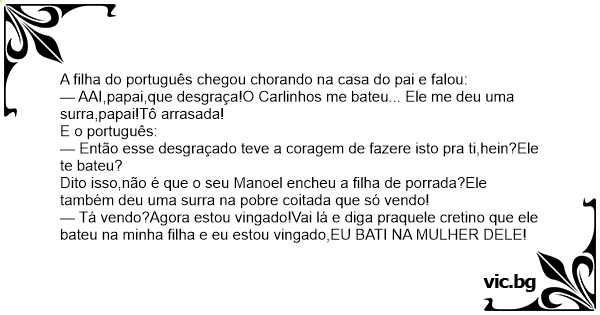 A filha do português chegou chorando na casa do pai e falou: