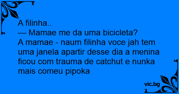 A mamae - naum filinha voce jah tem uma janela apartir desse dia a menina ficou com trauma de catchut e nunka mais comeu pipoka