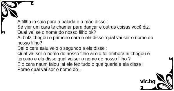 Qual vai ser o nome do nosso filho ai ele foi embora ai chegou o terceiro e ela disse qual vaiser o nome do nosso filho ?