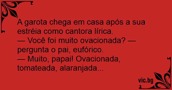 — Muito, papai! Ovacionada, tomateada, alaranjada...