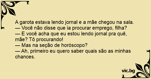 — E você acha que eu estou lendo jornal pra quê, mãe? Tô procurando!