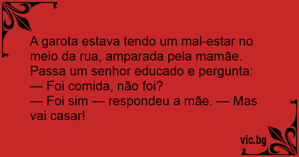 — Foi sim — respondeu a mãe. — Mas vai casar!