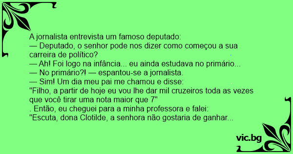 — Deputado, o senhor pode nos dizer como começou a sua carreira de político?