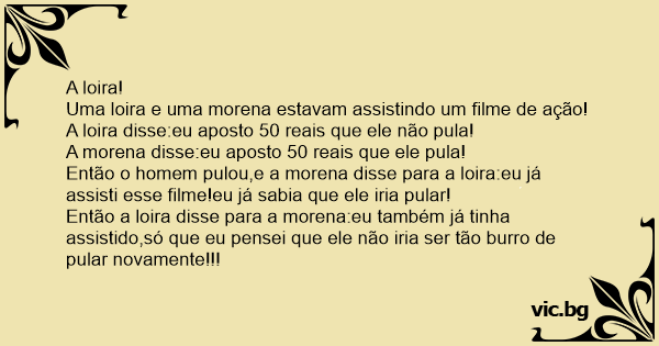 Então a loira disse para a morena:eu também já tinha assistido,só que eu pensei que ele não iria ser tão вurrо de pular novamente!!!