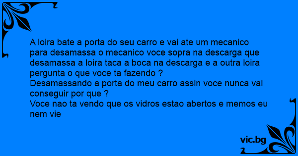 A loira bate a porta do seu carro e vai ate um mecanico para desamassa o mecanico voce sopra na descarga que desamassa a loira taca a boca na descarga e a outra loira pergunta o que voce ta fazendo ?