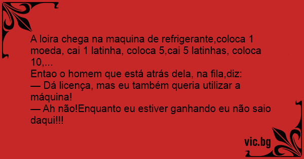 A loira chega na maquina de refrigerante,coloca 1 moeda, cai 1 latinha, coloca 5,cai 5 latinhas, coloca 10,...