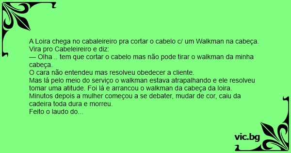 O cabeleireiro, muito intrigado, resolveu ouvir o que tinha na fita do walkman.