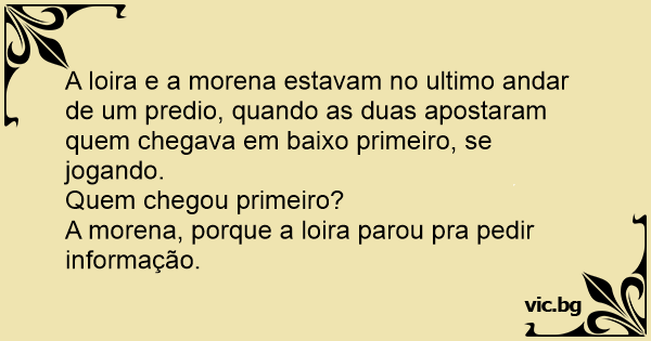 A loira e a morena estavam no ultimo andar de um predio, quando as duas apostaram quem chegava em baixo primeiro, se jogando.