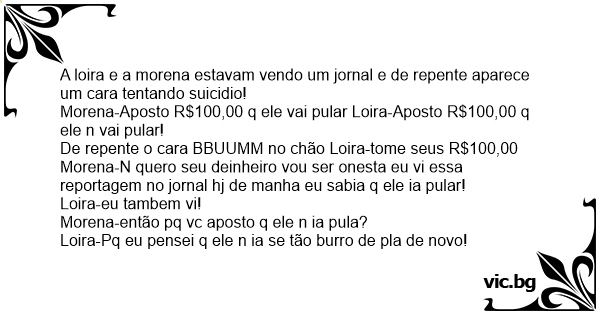 A loira e a morena estavam vendo um jornal e de repente aparece um cara tentando suicidio!