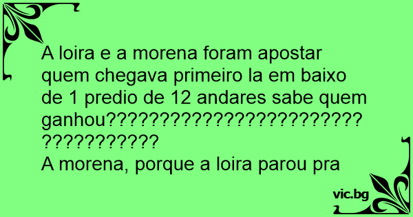 A loira e a morena foram apostar quem chegava primeiro la em baixo de 1 predio de 12 andares sabe quem ganhou???????????????????????????????????
