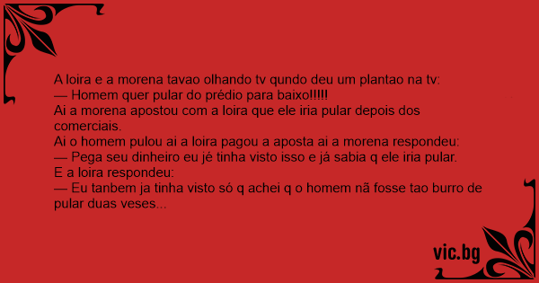 Ai o homem pulou ai a loira pagou a aposta ai a morena respondeu: