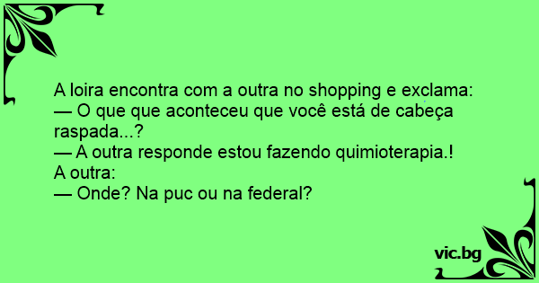 A loira encontra com a outra no shopping e exclama: