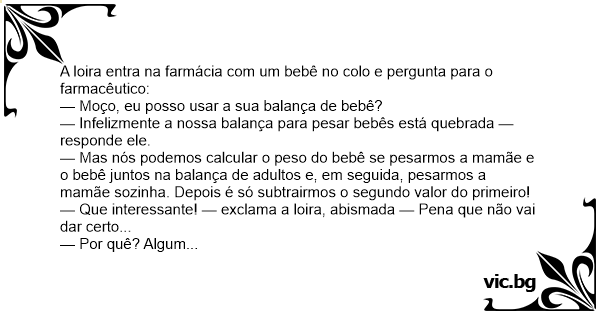 A loira entra na farmácia com um bebê no colo e pergunta para o farmacêutico: