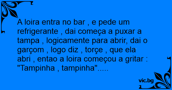 A loira entra no bar , e pede um refrigerante , dai começa a puxar a tampa , logicamente para abrir, dai o garçom , logo diz , torçe , que ela abri , entao a loira começou a gritar :