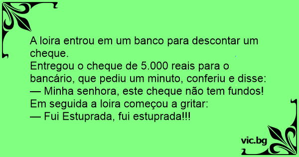 A loira entrou em um banco para descontar um cheque.