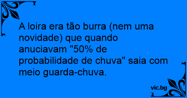 A loira era tão burra (nem uma novidade) que quando anuciavam "50% de probabilidade de chuva" saia com meio guarda-chuva.