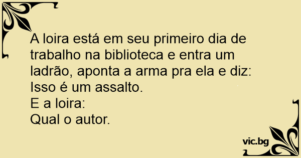 A loira está em seu primeiro dia de trabalho na biblioteca e entra um ladrão, aponta a arma pra ela e diz: