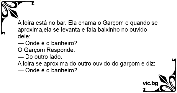 A loira está no bar. Ela chama o Garçom e quando se aproxima,ela se levanta e fala baixinho no ouvido dele: