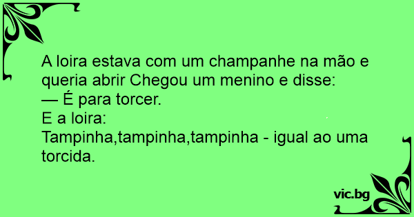 A loira estava com um champanhe na mão e queria abrir Chegou um menino e disse: