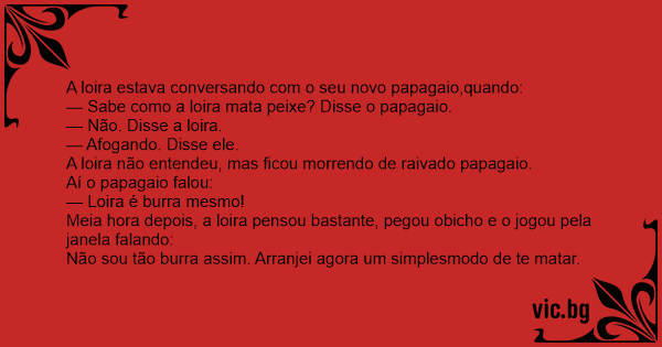 — Sabe como a loira mata peixe? Disse o papagaio.