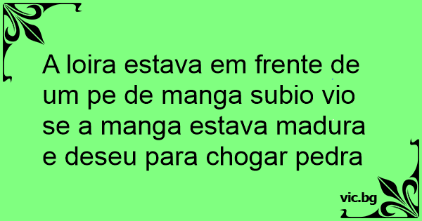 A loira estava em frente de um pe de manga subio vio se a manga estava madura e deseu para chogar pedra