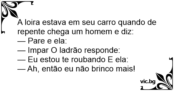 A loira estava em seu carro quando de repente chega um homem e diz: