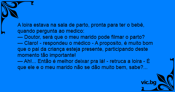 A loira estava na sala de parto, pronta para ter o bebê, quando pergunta ao medico: