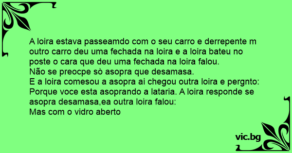 Porque voce esta asoprando a lataria. A loira responde se asopra desamasa,ea outra loira falou:
