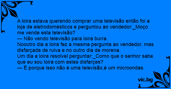 A loira estava querendo comprar uma televisão então foi a loja de eletrodomésticos e perguntou ao vendedor:_Moço me vende esta televisão?