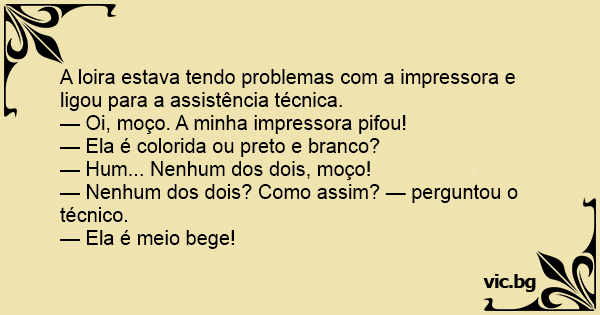 A loira estava tendo problemas com a impressora e ligou para a assistência técnica.