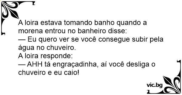 A loira estava tomando banho quando a morena entrou no banheiro disse: