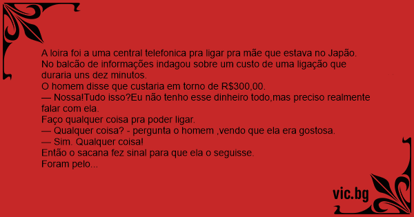 A loira foi a uma central telefonica pra ligar pra mãe que estava no Japão.