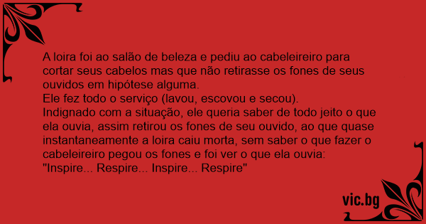 A loira foi ao salão de beleza e pediu ao cabeleireiro para cortar seus cabelos mas que não retirasse os fones de seus ouvidos em hipótese alguma.